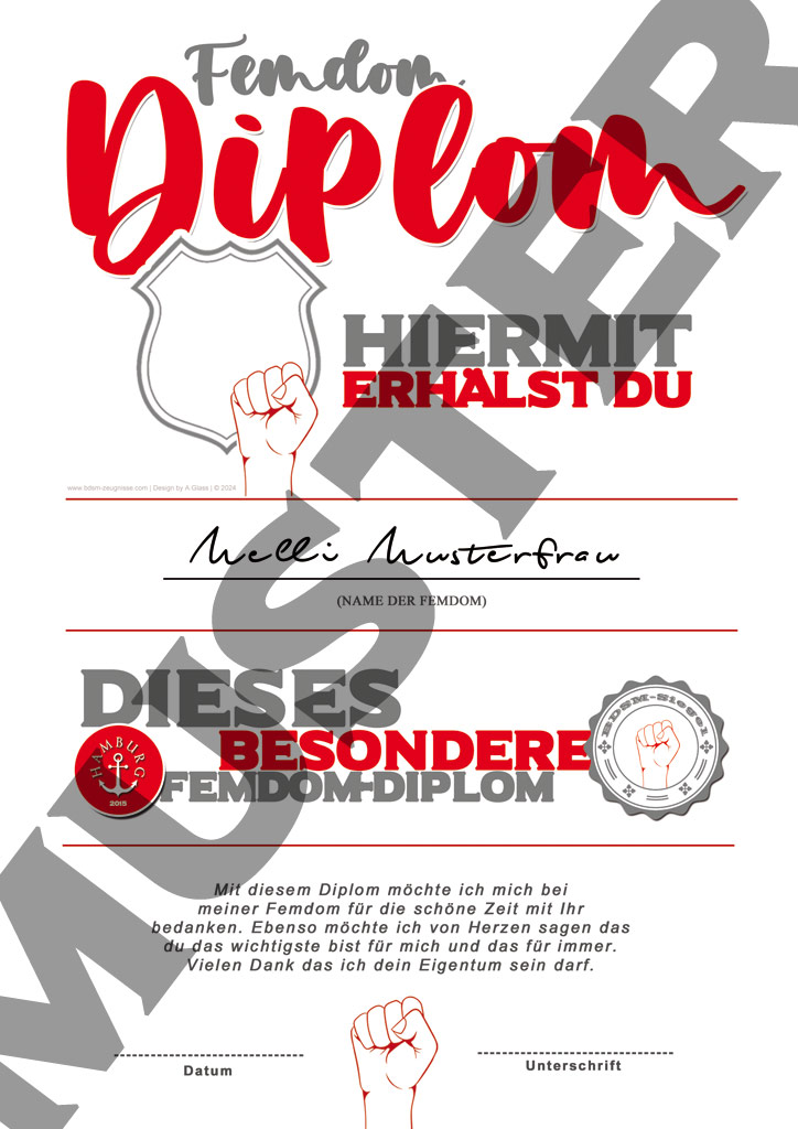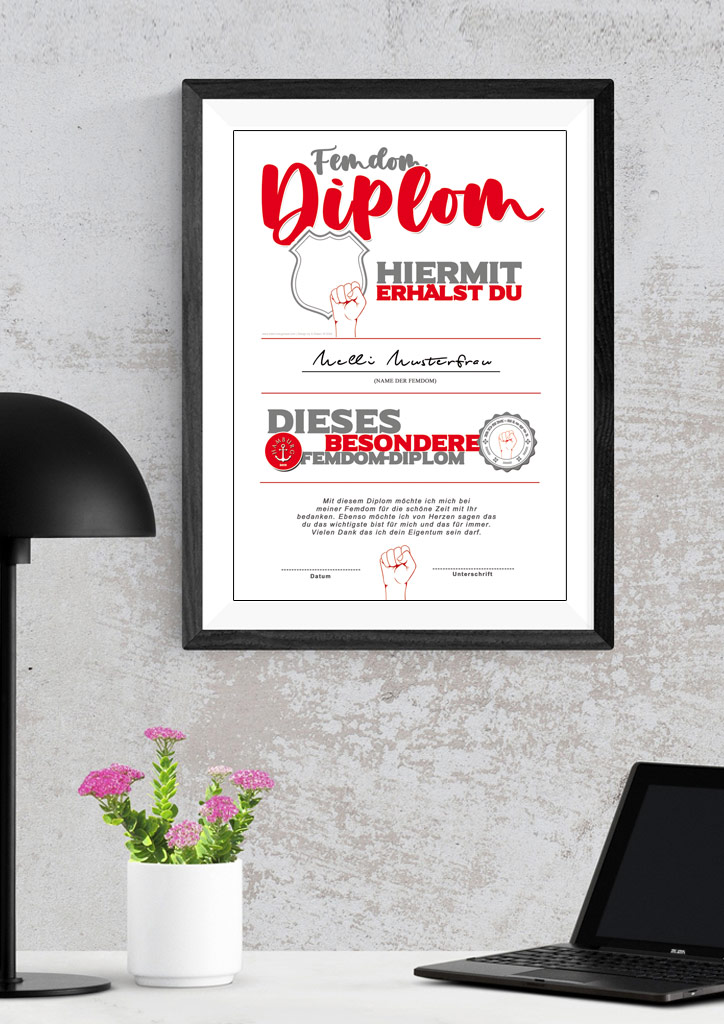 Dieses Diplom macht dich zur Power-Femdom! Gratuliere, hier kommt dein offizielles Femdom-Diplom,