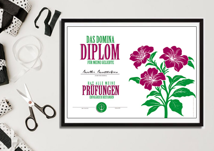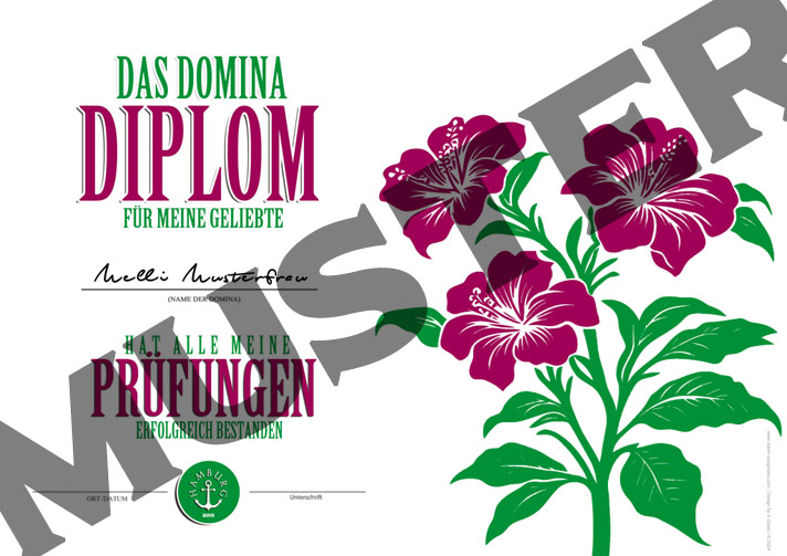 Dieses Diplom macht dich zur Power-Domina! Gratuliere, hier kommt dein offizielles Domina-Diplom,