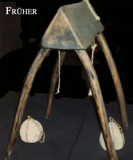 Sein Aufbau war ähnlich: ein keilförmiges Holzgestell, oft zusätzlich mit Metallzacken versehen.